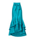 Falda asimétrica larga de talle alto, con doble capa de plisado en el ruedo y cinturón en el mismo material.