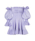 Vestido corto de algodón con hombros descubiertos, mangas globo cortas y detalles plisados a mano en busto y ruedo. La espalda y la cintura cuentan con un enresortado para mayor comodidad y ajuste.