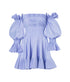 Vestido corto de algodón con hombros descubiertos, mangas globo cortas y detalles plisados a mano en busto y ruedo. La espalda y la cintura cuentan con un enresortado para mayor comodidad y ajuste.